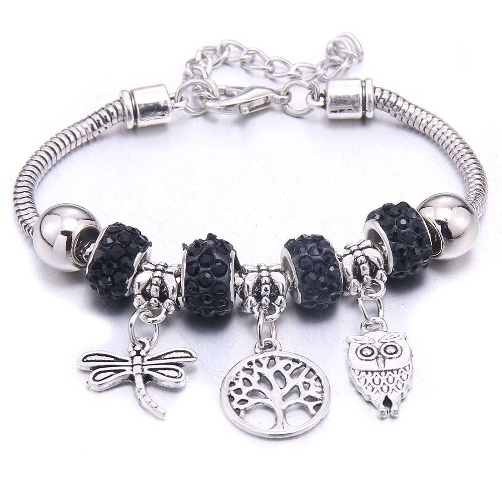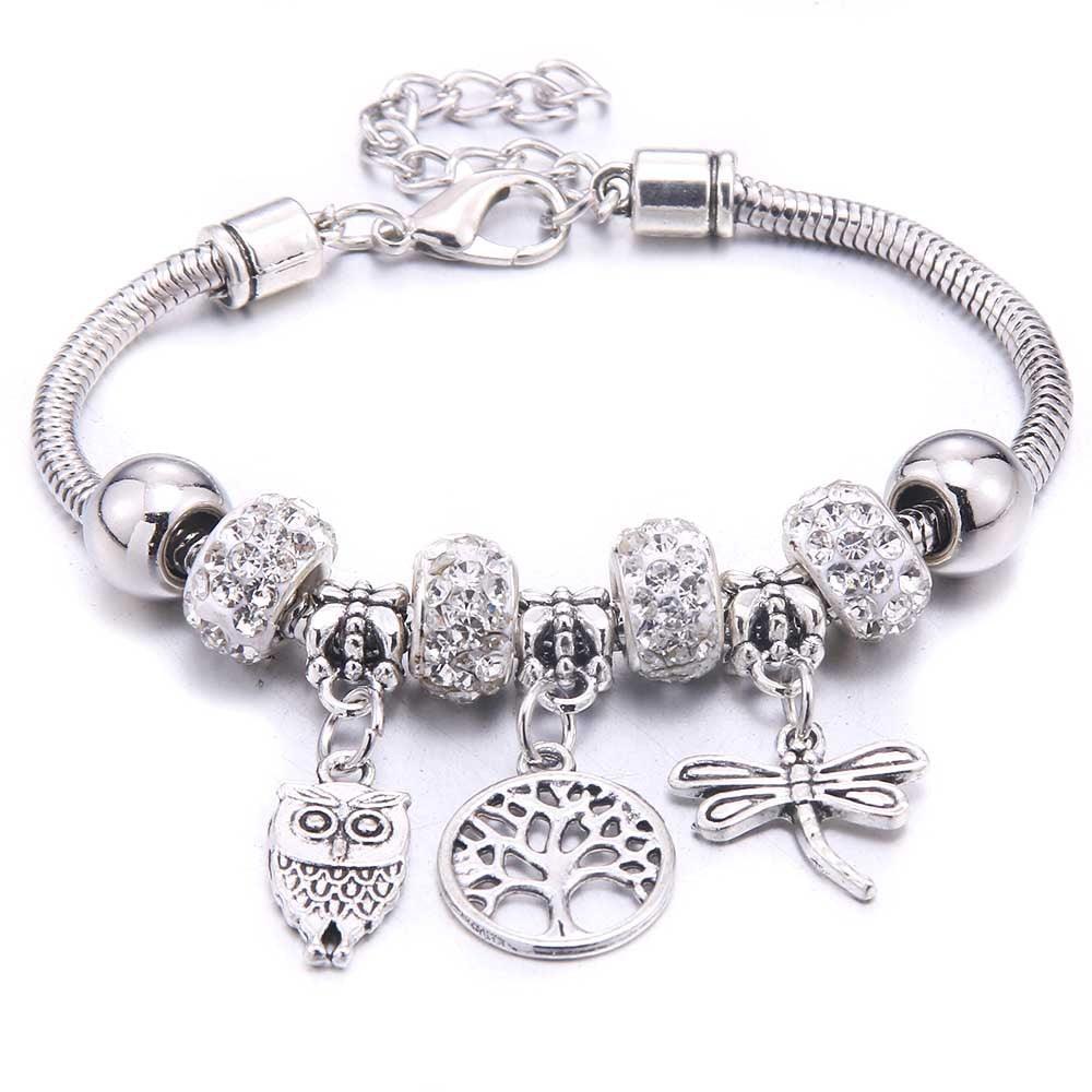 Pulseira Berloque com efeito mola, ajustável ao seu pulso, combinamos os Berloques mais lindos em formato de coruja e libélula, berloque de cristal que garante um brilho ainda mais único e realça o seu look.